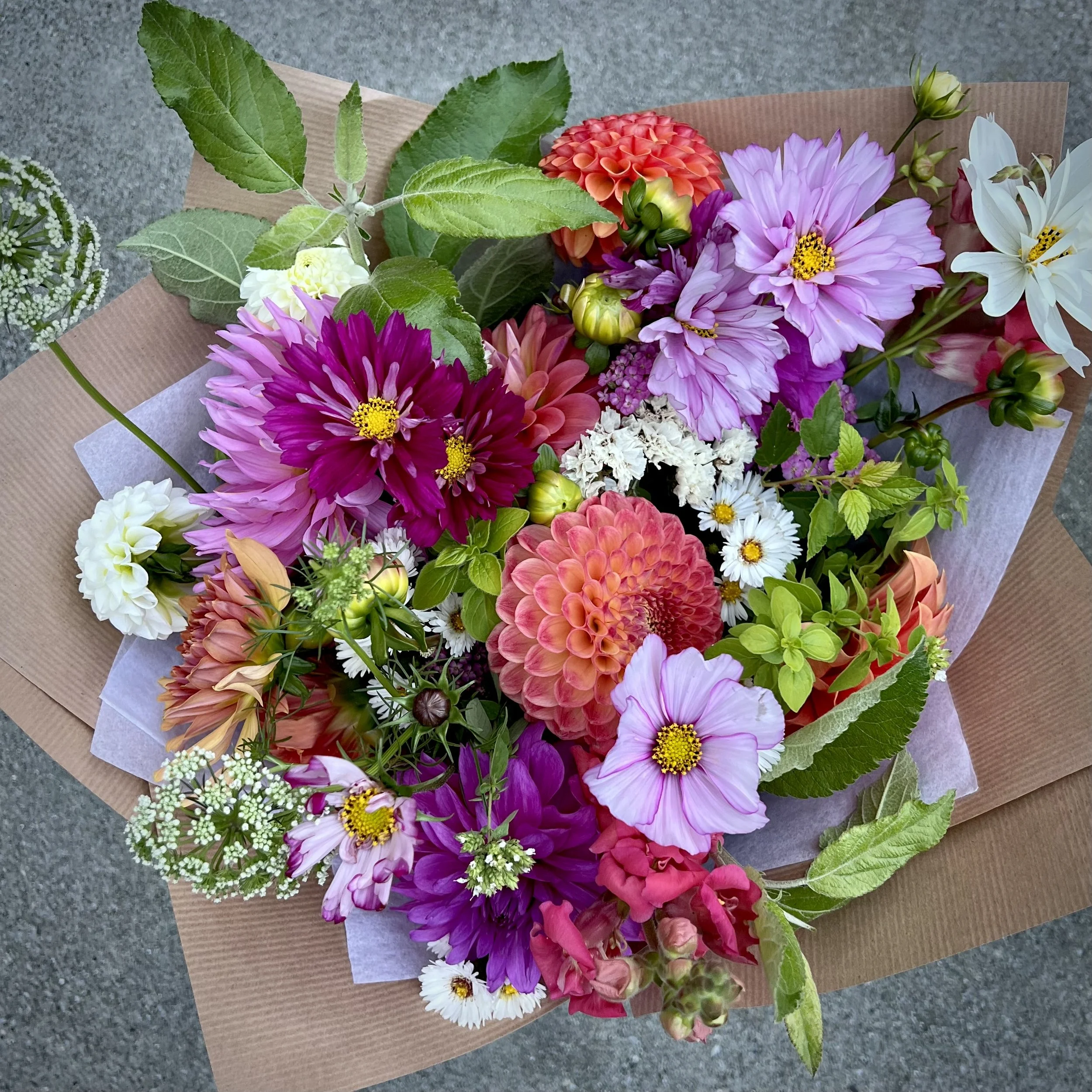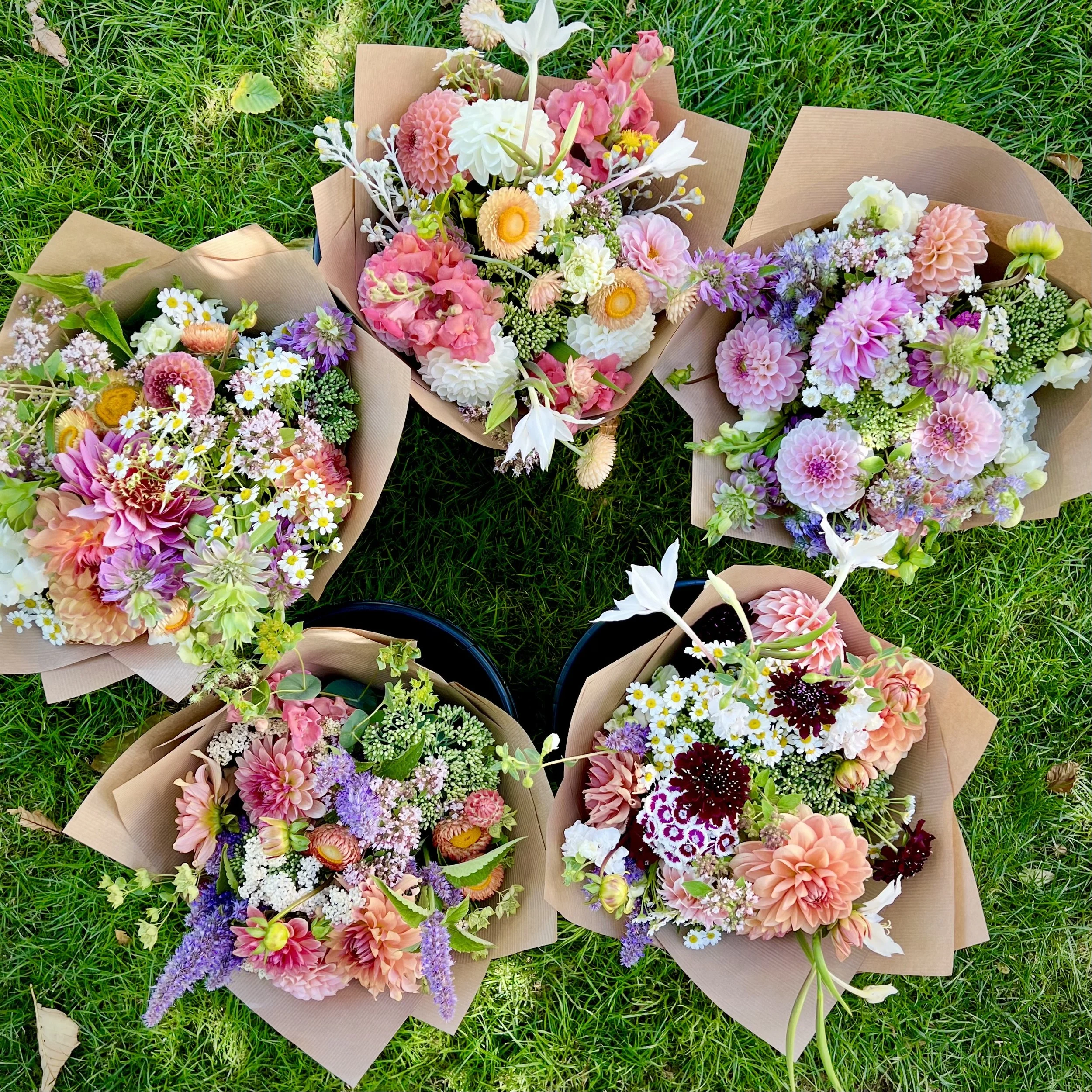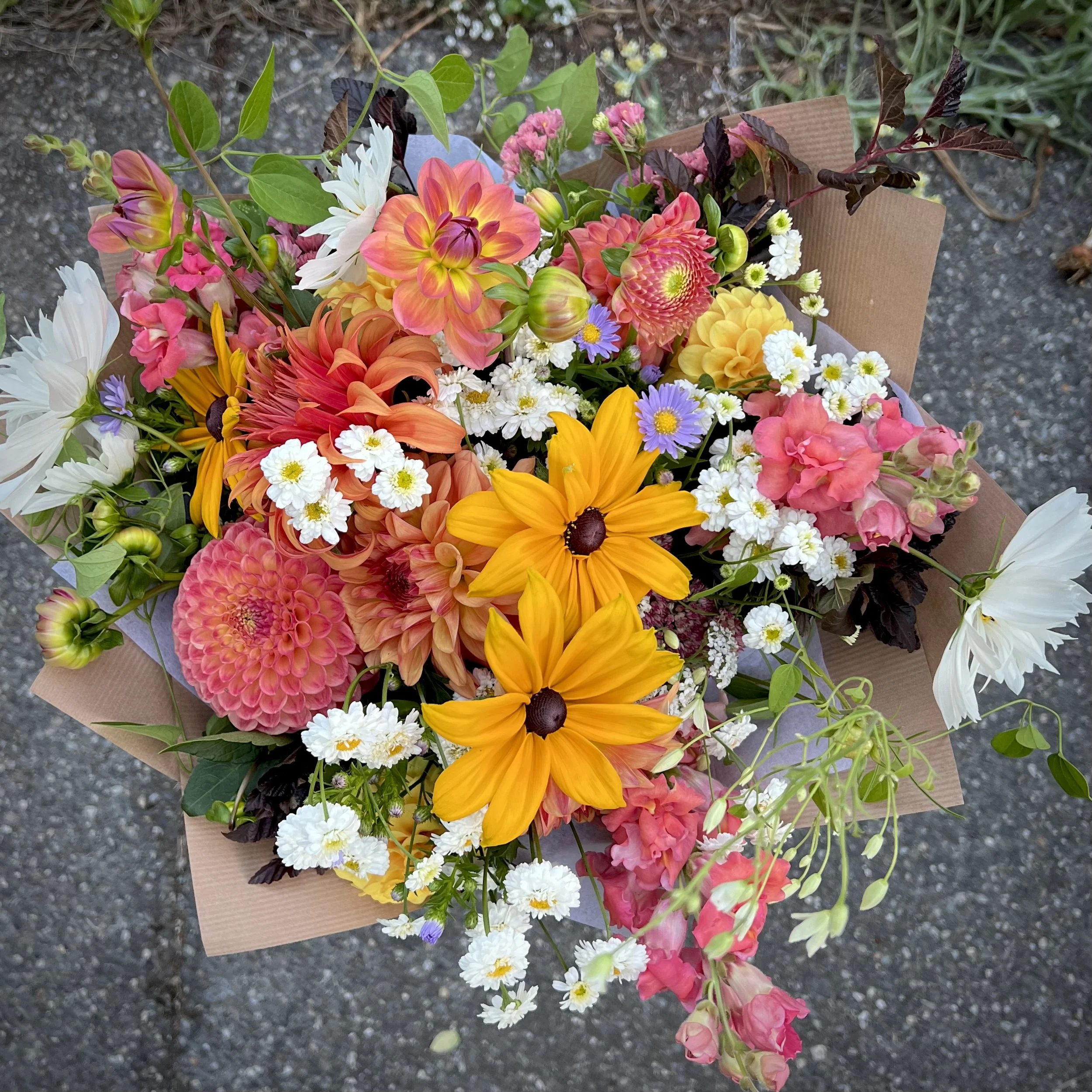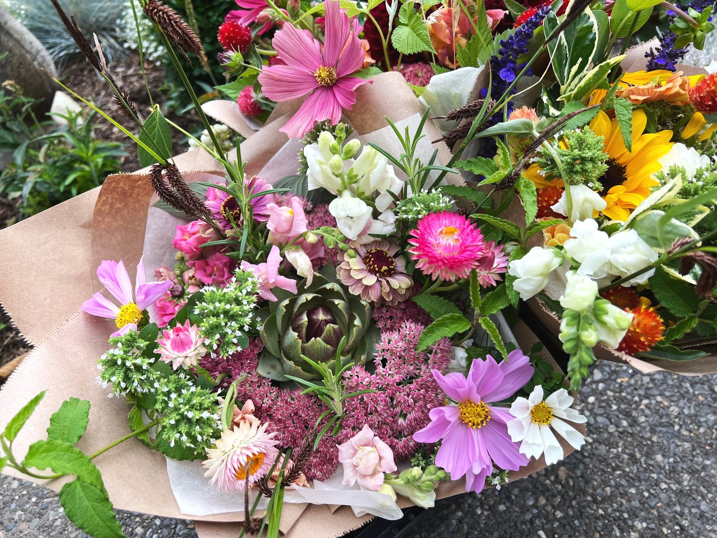 Offered as a series across two halves of the growing season, SPRING (Apr-May-June) OR SUMMER (July-Aug-Sept). This year’s rates include local delivery within Bellingham. Classic hand-tied spiral bouquets will come wrapped and delivered monthly (3 bouquets) or bi-weekly (6 bouquets), based on your selection in the drop-downs.