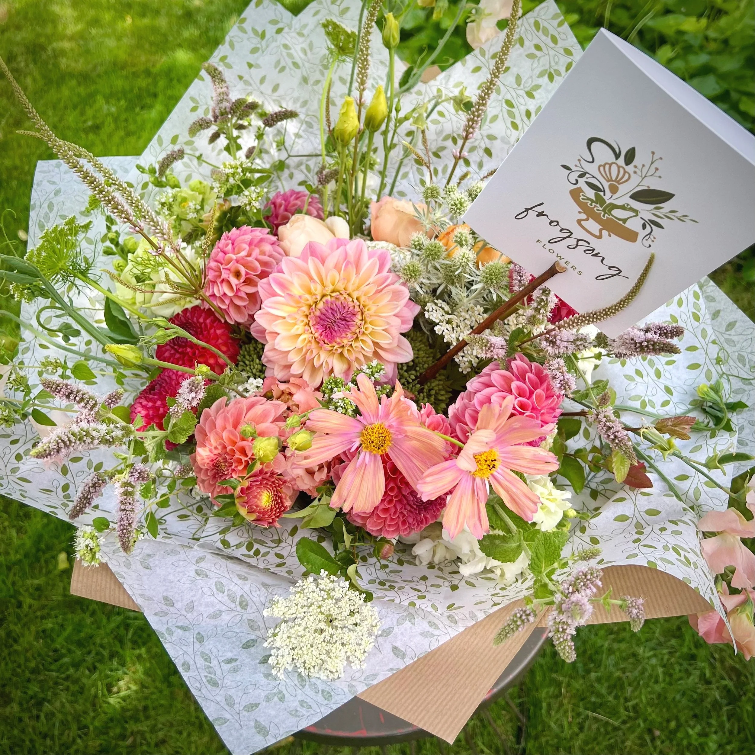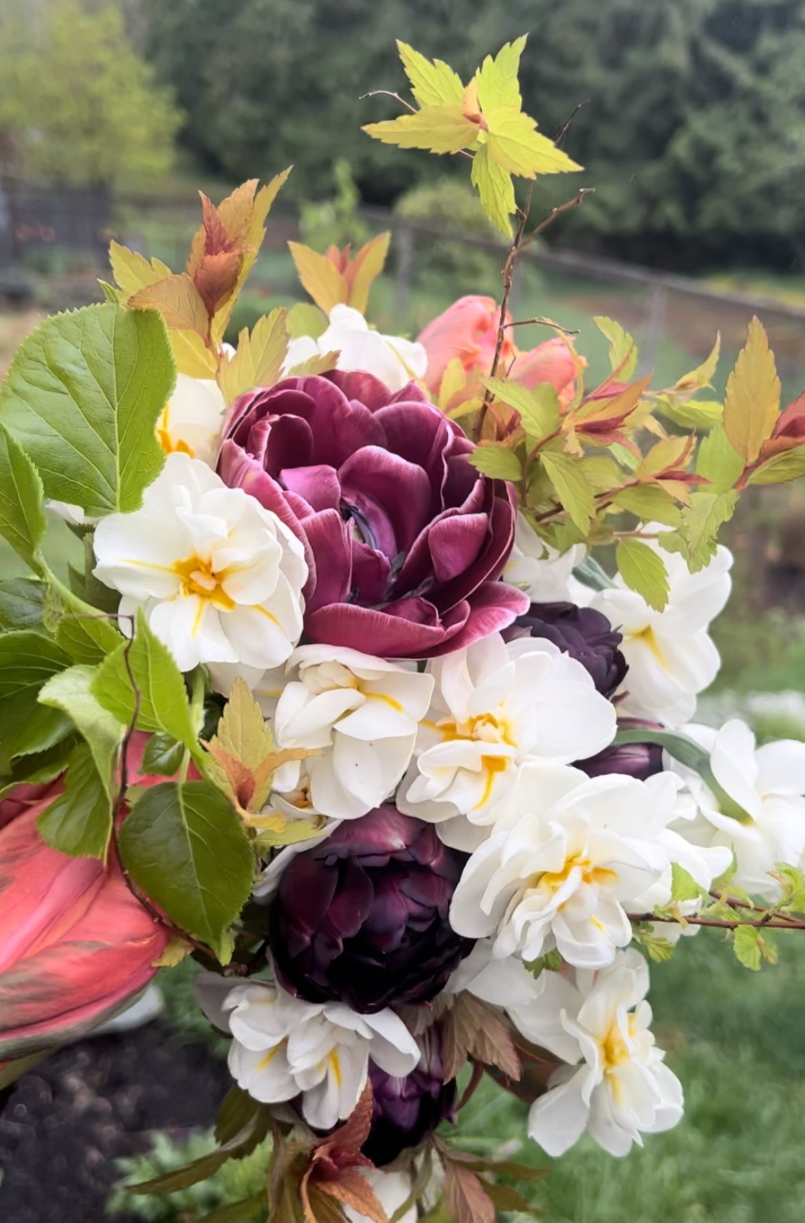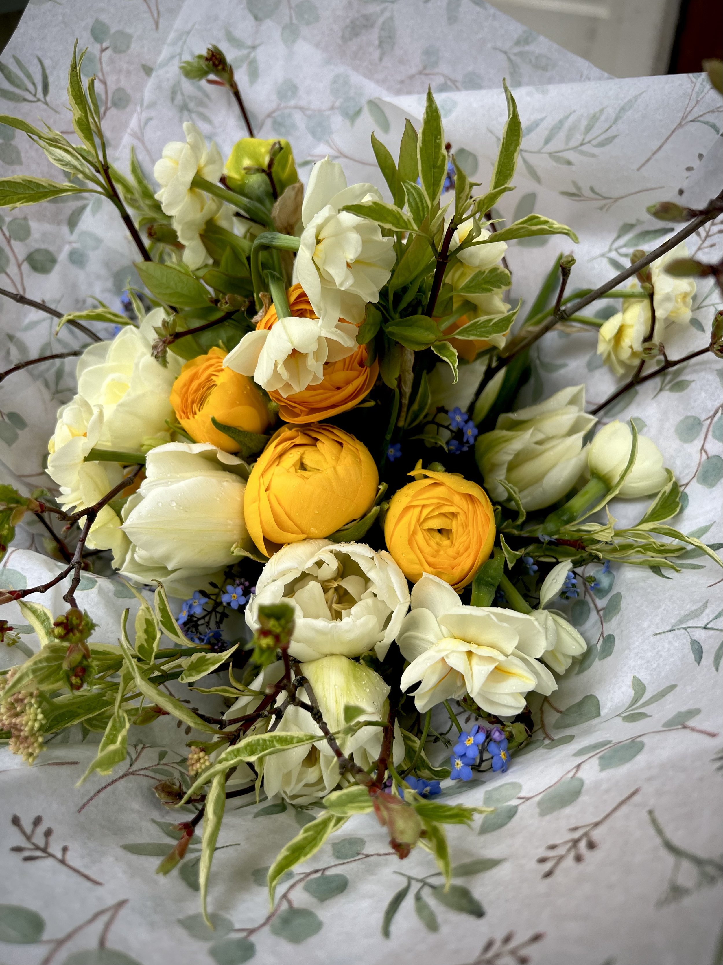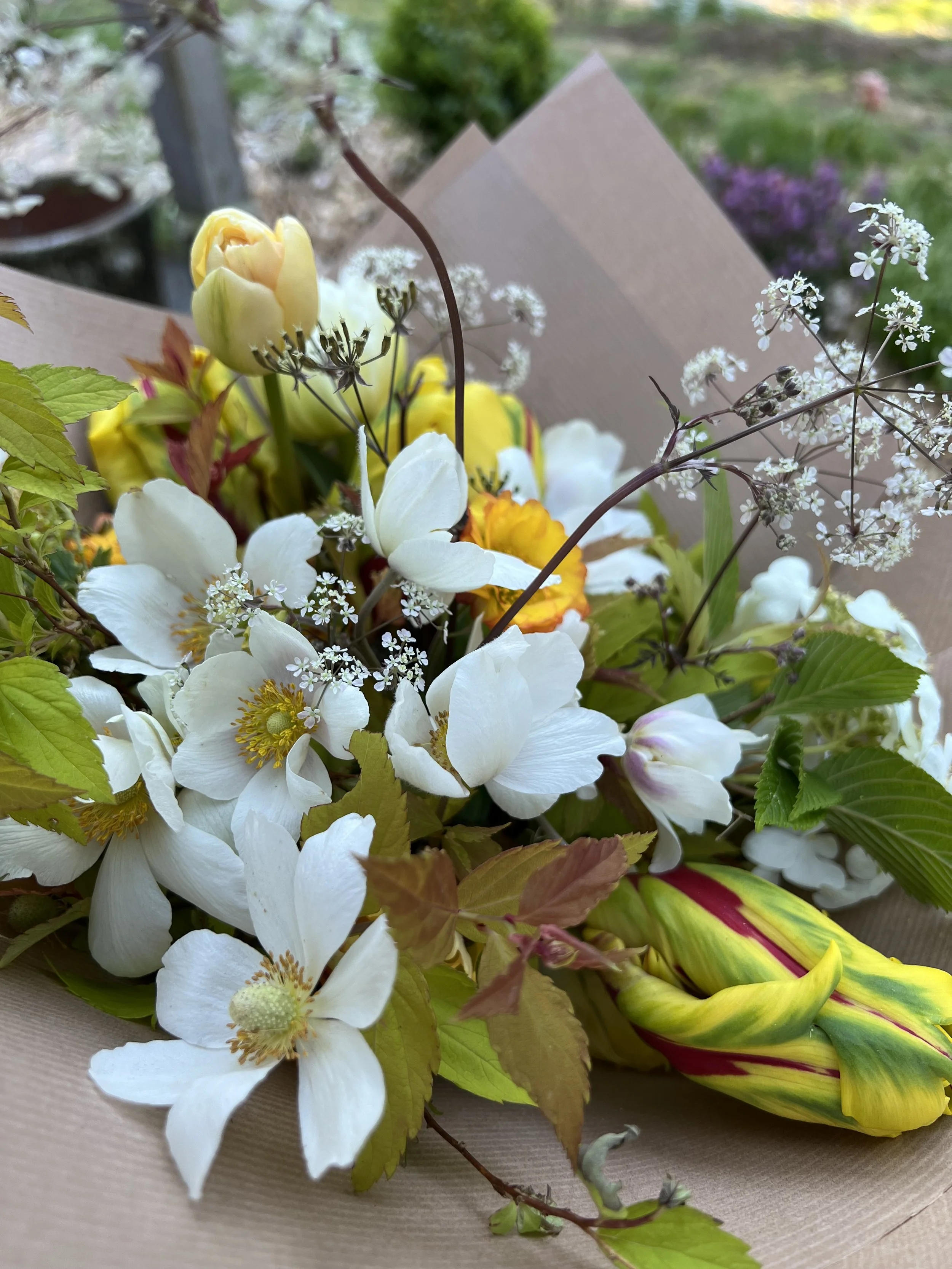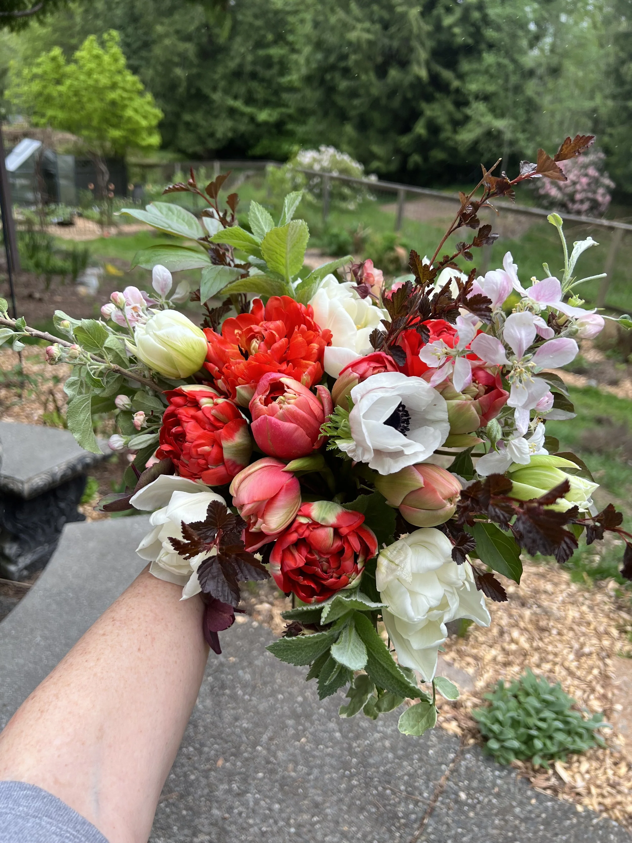 Photos are samples from across seasons— bouquets are typically “gardener’s choice” —created with the very best blooms available at the time of order. If you have a specific color palette or variety of flower in mind, please add to the Note at check-out and every effort will be made to accommodate special preferences.