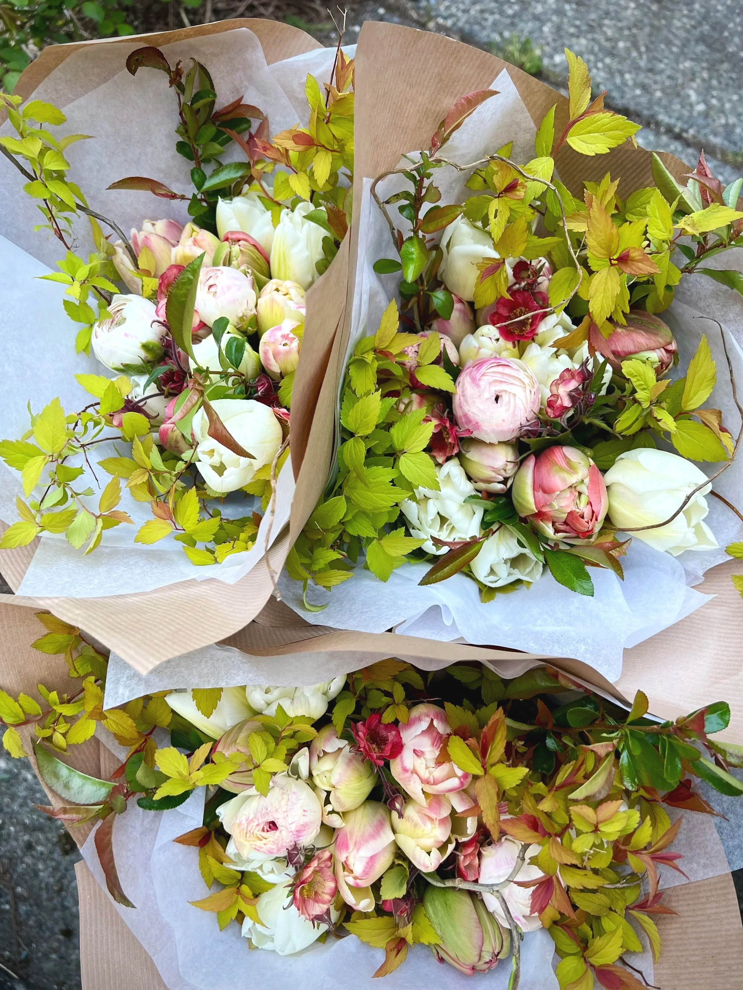 As a temporary measure for this season, we will be stepping away from regular online orders. However, we will be accepting orders for Hand-tied Gift Bouquets for pick-up only through direct messaging @frogsongflowers or by inquiry/email at the Say Hello page right here at the website. Orders will be fulfilled as availability allows, and if we can’t meet the needs on a given week, we can recommend other local colleagues with a similar style and ethos, so don’t be shy about reaching out!